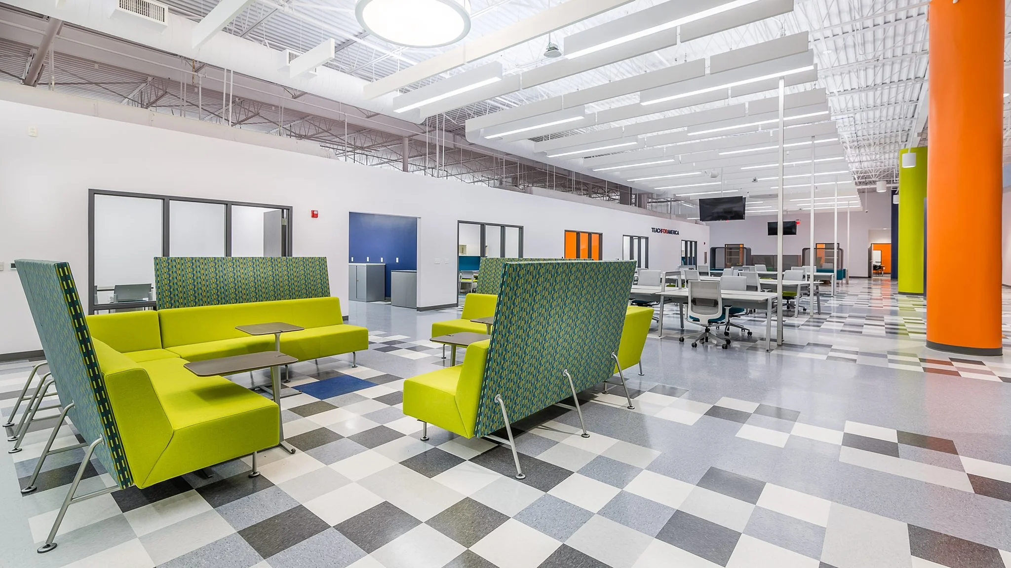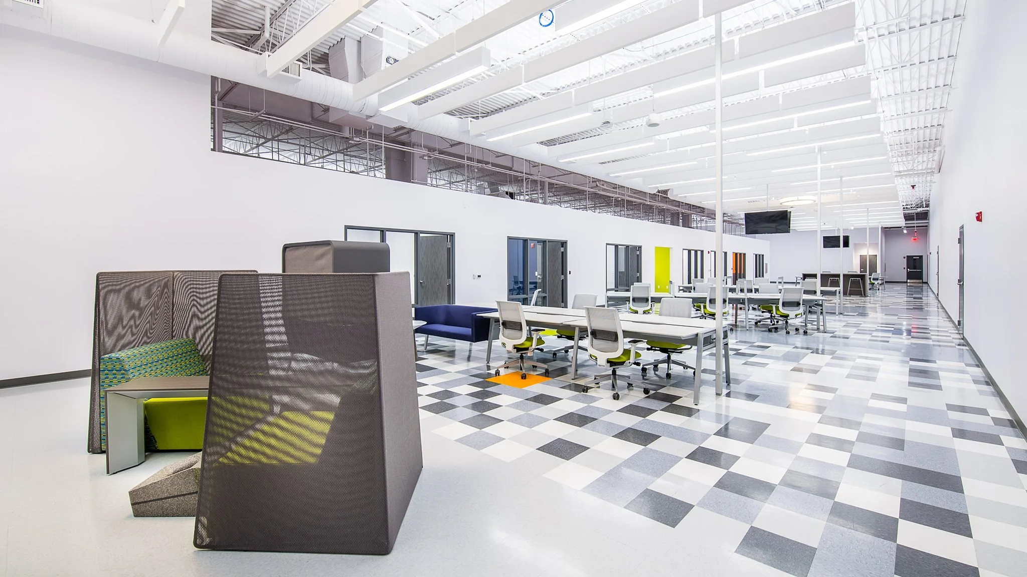 The new facility incorporates green-building technology and sustainable materials, reflecting a commitment to both environmental responsibility and modern functionality. The space is designed to foster innovation and collaboration, featuring a business incubator with a variety of meeting spaces, open and private modular offices, and flexible interactive education centers.